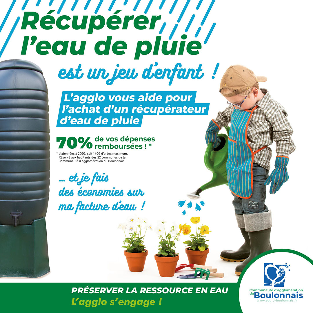 L'agglomération Boulonnaise accompagne financièrement les habitants du territoire qui s'engagent dans une démarche de développement durable, pour l'achat de récupérateurs d'eau de pluie.